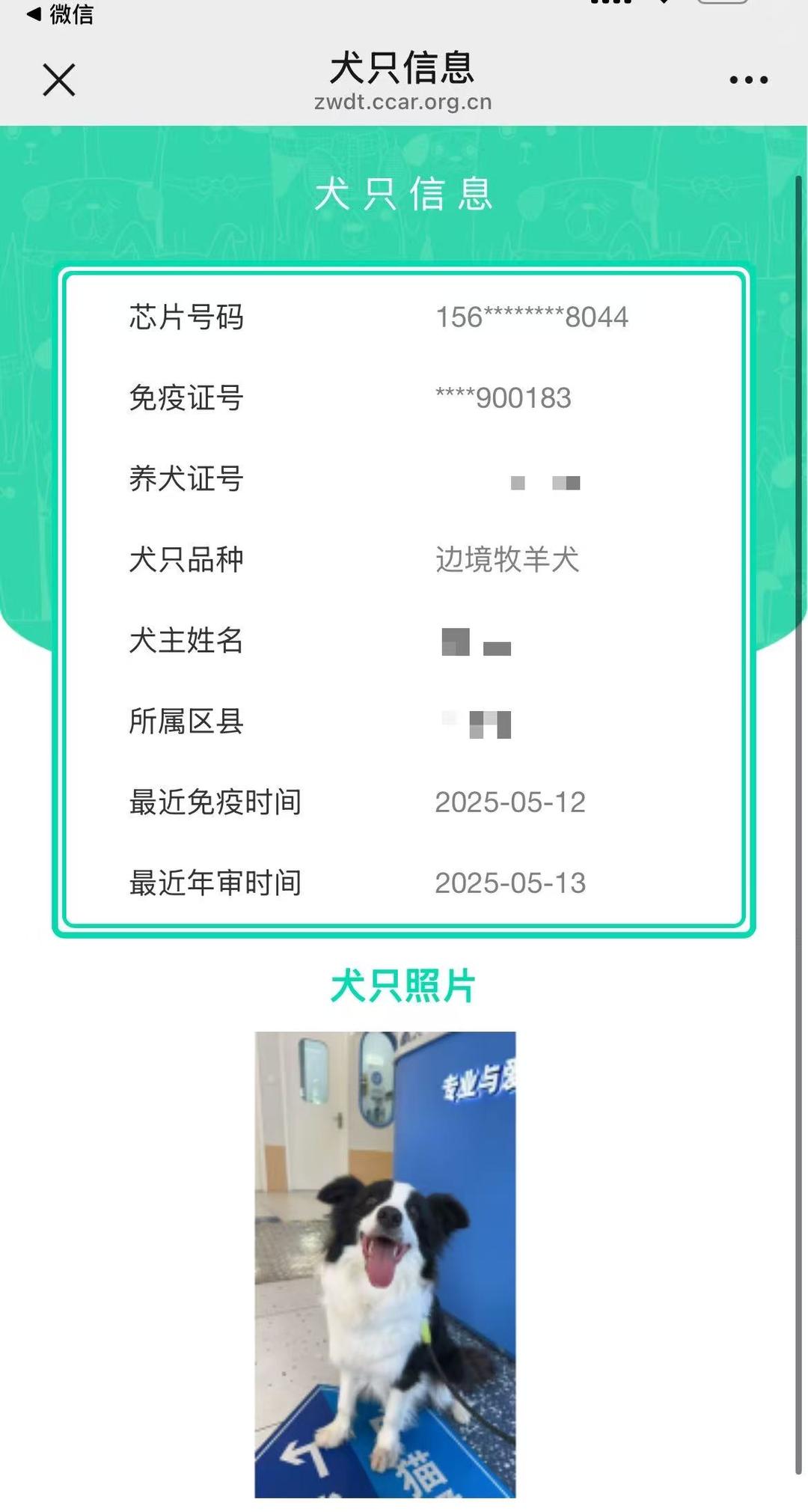 范某某的边牧犬证