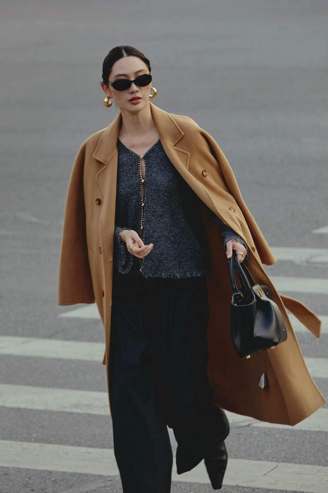 每一个人的身高、气质、骨架大小不同,需要的穿衣风格有很大的区别。比如上面这位时尚博主,长相偏成熟,骨架比较大,这时候就要用驼色的长款翻领大衣搭配一条黑色的阔腿裤,这样会更遮肉,让身材变得更流畅,同时更显气场。
