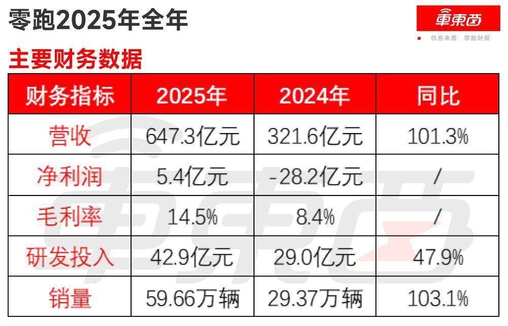在2025年,零跑首次实现了年度盈利。2025年全年,零跑的净利润为人民币5.4亿元,而2024年全年为亏损人民币28.2亿元。